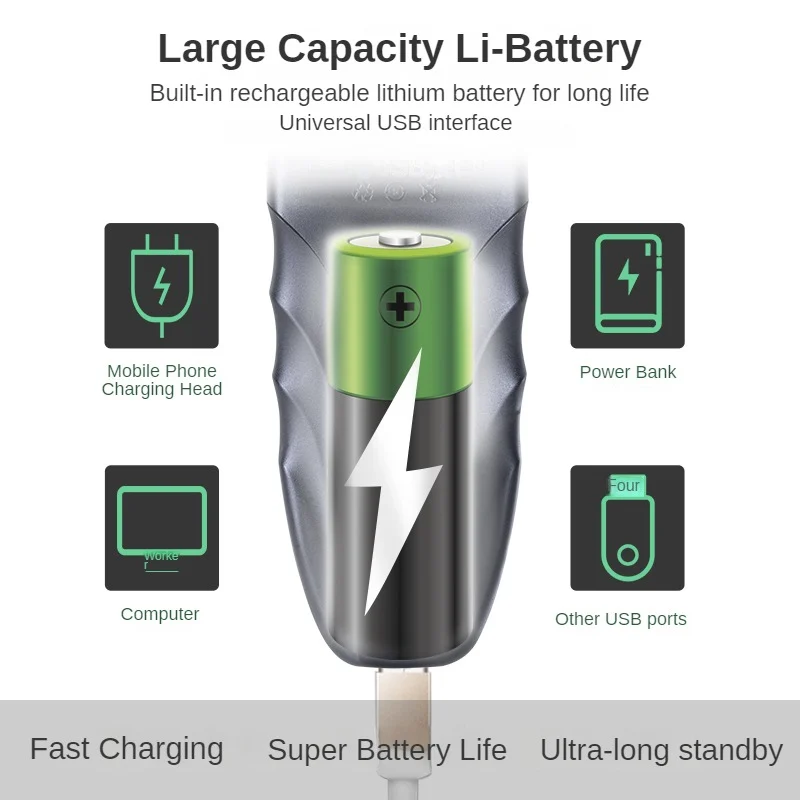- 900mAh lithium battery with USB charging support